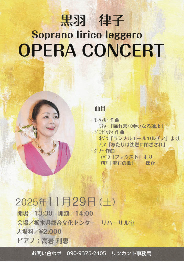 モーツァルトのモテット「踊れ喜べ幸いなる魂よ」他、イタリアとフランスのオペラ、日本の秋の歌を歌います。
